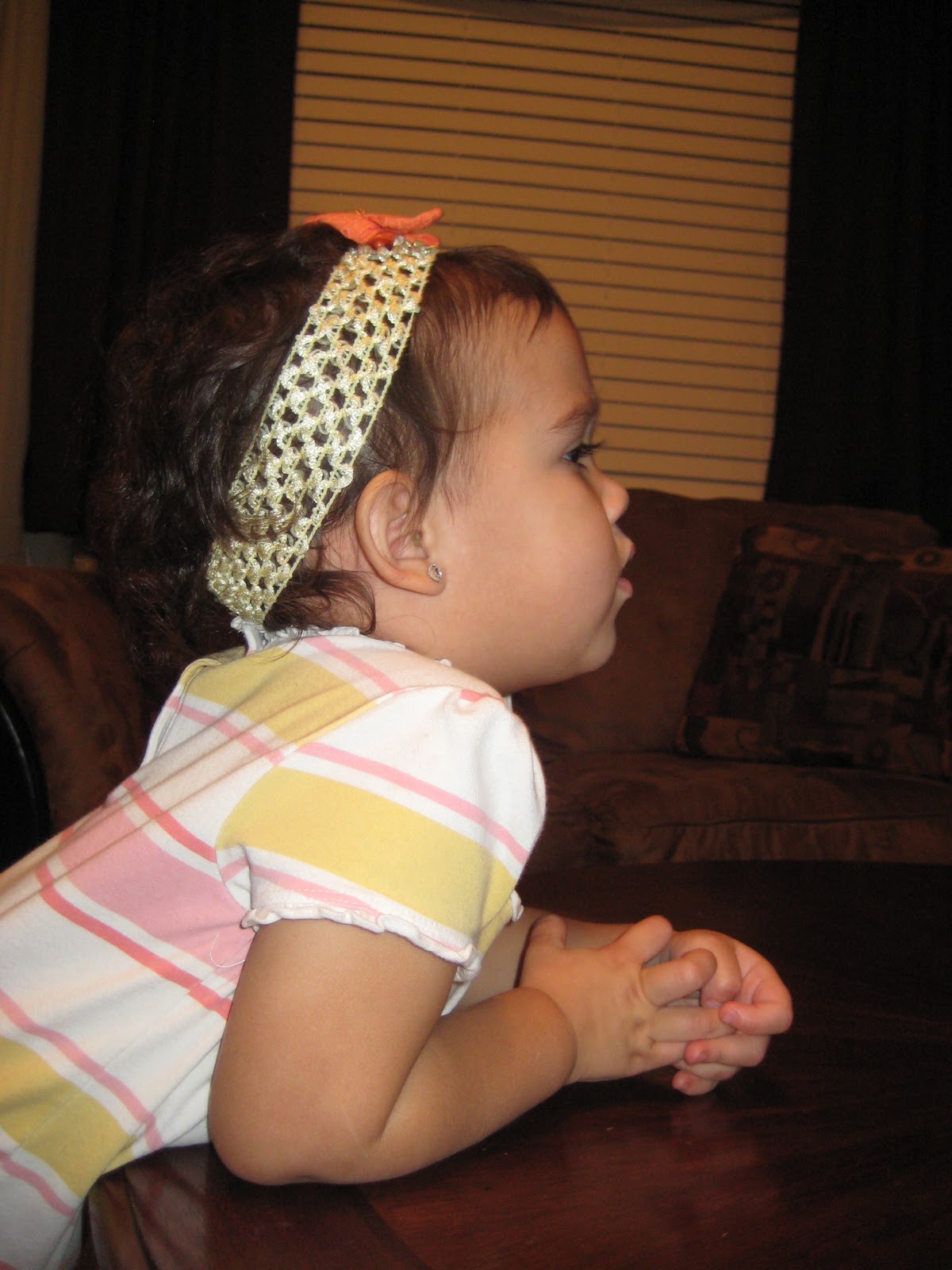 Well...when my alarm went off (I had my phone on vibrate so it wouldn't wake Odette...AND I was holding it), Odette woke up! I tried getting her to nurse again so that she'd drift off and then I could sneak away, but that was not happening! I really had stuff to do, though, so I just had to let her cry. She cried for about 5 minutes and then got quiet and just watched me as I put my makeup on and got the diaper bag ready...it didn't look like I was going to be able to make myself even a quick bagel, though...