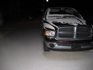 I then fed Isis and gave her some time to eat and digest while I worked out. I finally brought her into the garage. When I first opened my garage door, though, I found a light layer of snow covering everything: